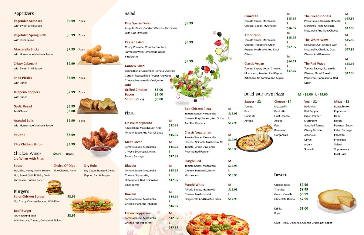 Welcome to Pizzeria King in Pickering, tucked away at 2062 Liverpool Rd. This charming, family-run establishment offers an inviting menu that ensures every pizza lover leaves satisfied. Customers rave about the funghi pizza with its creamy alfredo base, showcasing a delightful blend of flavors that rivals even the fanciest restaurants. The signature meat lovers pizza is another highlight, praised for its generous toppings and perfect seasoning, catering to those seeking a hearty meal.